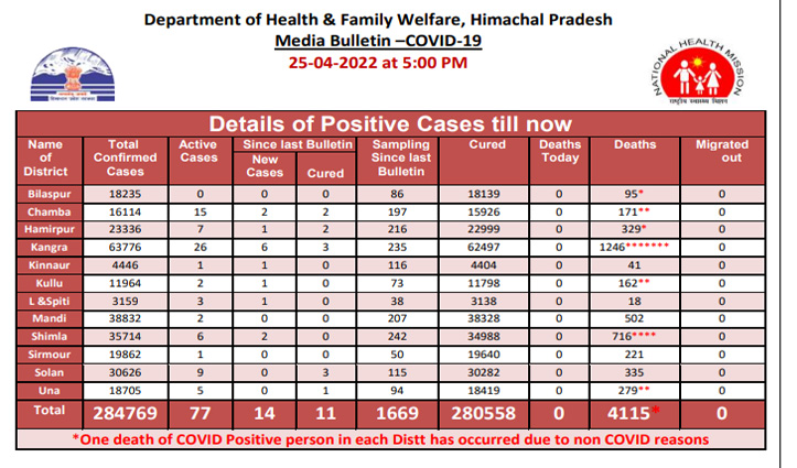 Corona Update: हिमाचल में आज 14 लोग पॉजिटिव, रैंडम सैंपलिंग के दिए निर्देश