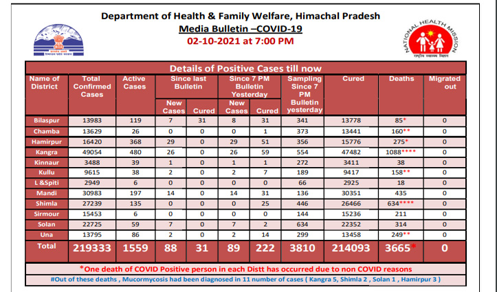Corona Update: हिमाचल में आज 222 हुए ठीक, 2 लोगों की गई जान; जाने पूरी डिटेल