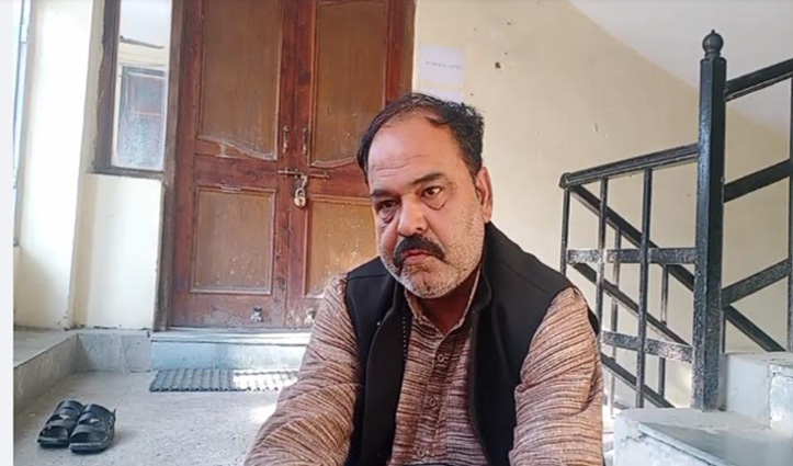 APMC कांगड़ा ऑफिस के बाहर धरने पर बैठे बोर्ड ऑफ डायरेक्टर संजय उपाध्याय