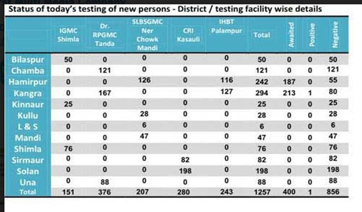 कोरोना अपडेटः Himachal में आज 856 सैंपल नेगेटिव, किस जिले के कितने जानिए