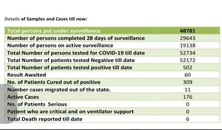 वहीं हिमाचल में आज 1314 सैंपल जांच को आए हैं। इसमें 1246 नेगेटिव रहे हैं। आठ ही पॉजिटिव आए हैं। बाकी पॉजिटिव पेंडिंग सैंपल से हैं। हिमाचल में अब तक 52734 लोगों के सैंपल कोरोना जांच को लिए जा चुके हैं। इसमें 52172 नेगेटिव पाए गए हैं। 502 ही पॉजिटिव आए हैं। 60 की रिपोर्ट का इंतजार है। अब तक प्रदेश में 48781 लोगों को निगरानी पर रखा जा चुका है। इसमें 29643 लोग 28 दिन का निगरानी पीरियड पूरा कर चुके हैं। 19138 अभी निगरानी में हैं।