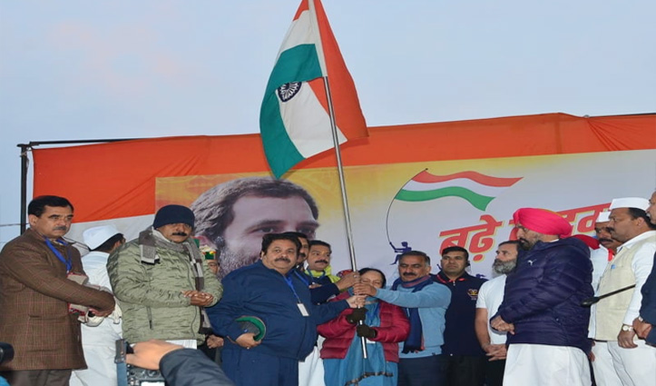 राहुल गांधी की भारत जोड़ो यात्रा ( Rahul gandhi Bharat Jodo Yatra) आज हिमाचल में चल रही है। कांगड़ा जिला के तहत इंदौरा के मीलवां में भारत जोड़ो यात्रा हिमाचल में प्रवेश हुई। सुबह सात बजे यहां पर फ्लैग एक्सचैंज सेरेमनी( flag Exchange ceremony) के बाद हिमाचल के सीएम सुखविंदर सुक्खू, प्रदेश अध्यक्ष प्रतिभा सिंह सहित पूरा मंत्रिमंडल और विधायक इस यात्रा में शामिल हुए। यात्रा शुरू होने के बाद राहुल काठगढ़ महादेव मंदिर पहुंचे और उन्होंने वहां पर पूजा-अर्चना की ।