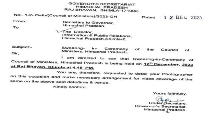 Breaking : सुक्खू कैबिनेट का विस्तार आज, धर्माणी, गोमा बनेंगे मंत्री, 4.45 बजे शपथ ग्रहण समारोह